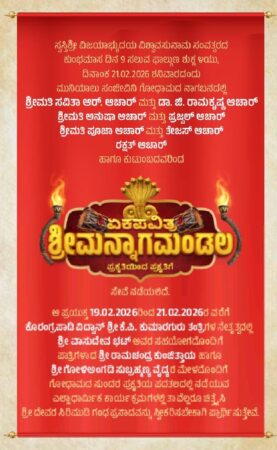 ಅವರು ಸೋಮವಾರ ಮುನಿಯಾಲು ಸಂಜೀವಿನಿ ಗೋಧಾಮದ ನಾಗಬನದಲ್ಲಿ ಫೆಬ್ರವರಿ 19 ರಿಂದ 21 ರವರೆಗೆ ನಡೆಯಲಿರುವ ಏಕಪವಿತ್ರ ಶ್ರೀಮನ್ನಾಗಮಂಡಲದ ಕುರಿತು ನಡೆಸಿದ ಸುದ್ದಿಗೋಷ್ಠಿಯಲ್ಲಿ ಮಾಹಿತಿ ನೀಡಿದರು.
