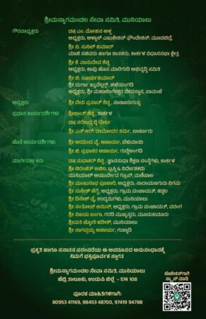 ಕೊರಂಗ್ರಪಾಡಿ ವಿದ್ವಾನ್ ಕೆಪಿ ಕುಮಾರಗುರು ತಂತ್ರಿ ನೇತೃತ್ವದಲ್ಲಿ, ವಾಸುದೇವ ಭಟ್ ಅವರ ಸಹಯೋಗದೊಂದಿಗೆ ಪಾತ್ರಿಗಳಾದ ರಾಮಚಂದ್ರ ಕುಂಜಿತ್ತಾಯ ಹಾಗೂ ಗೋಳಿಯಂಗಡಿ ಸುಬ್ರಹ್ಮಣ್ಯ ವೈದ್ಯ ಅವರ ಮೇಳದೊಂದಿಗೆ ನಾಗಮಂಡಲ ನಡೆಯಲಿದೆ.