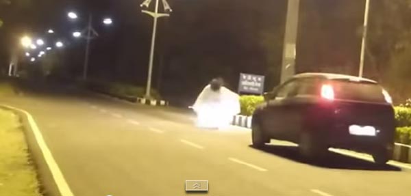 ರಸ್ತೆ ಬದಿಯಲ್ಲಿ ದೆವ್ವದ ವೇಷ ಹಾಕಿ ವಾಹನ ಚಾಲಕರಿಗೆ ಹೆದರಿಸುವ ಆಟ ಆಡುತ್ತಿದ್ದ ತಂಡ, ಕಾರೊಂದರ ಚಾಲಕನಿಗೆ ಹೆದರಿಸಲು ಹೋಗಿ ಆತ ನಿಜ ದೆವ್ವವೆಂದು ಭಾವಿಸಿ ಢಿಕ್ಕಿ ಹೊಡೆದ ಪರಿಣಾಮ ‘ದೆವ್ವ’ ಗಂಭೀರವಾಗಿ ಗಾಯಗೊಂಡಿರುವ ವೀಡಿಯೋ ಒಂದು ಸಾಮಾಜಿಕ ತಾಣಗಳಲ್ಲಿ ವೈರಲ್ ಆಗಿದೆ.