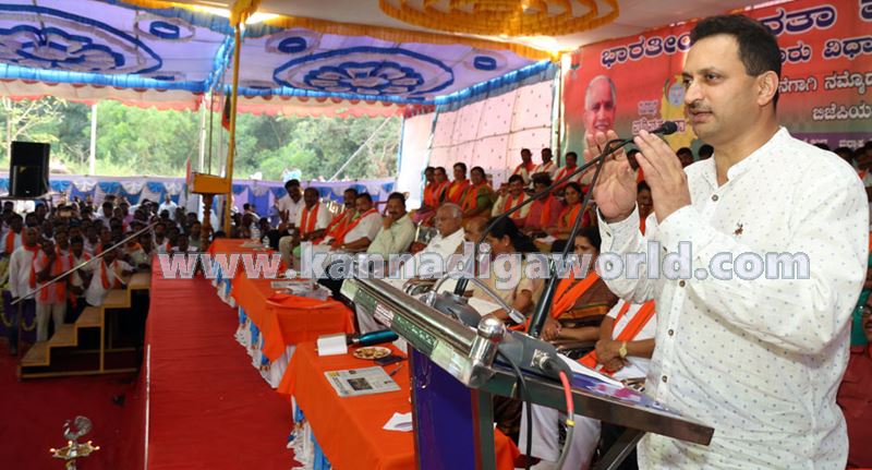 ಬೈಂದೂರು ನಮ್ಮ ಯುದ್ಧ ಭೂಮಿ, ಬೈಂದೂರಿನಲ್ಲಿ ನಮ್ಮ ಭಗವಾಧ್ವಜ, ನಮ್ಮ ಬಿಜೆಪಿ ಧ್ವಜ ಹಾರಾಡ್ತಾ ಇರಬೇಕು. ಮತ್ತೆ ಇಲ್ಲಿನ ಕಾಂಗ್ರೆಸ್ ಶಾಸಕರ ದುರಾಡಳಿತ ಕಡಿಮೆ ಆಗಬೇಕು. ಪೂಜಾರಿಯ ಪುಂಗಿ ಬಂದ್ ಆಗಬೇಕು, ಬಿಜೆಪಿ ಗೆಲ್ಲಬೇಕು.
