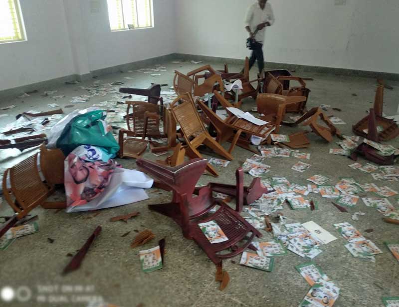 #WATCH Congress workers vandalised party's office in #Mandya protesting over the distribution of tickets of #KarnatakaAssemblyElections pic.twitter.com/Bj4qdJW6m4