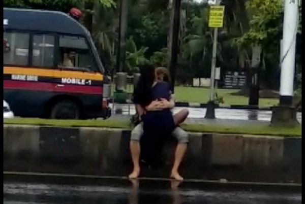 ಮುಂಬೈನ ಮರೀನ್ ಡ್ರೈವ್ ಪ್ರದೇಶದ ನಾರಿಮನ್ ಕೇಂದ್ರದ ಬಳಿಯಿರುವ ರಸ್ತೆ ವಿಭಜಕದ ಮೇಲೆ ಹಾಡಹಗಲೇ ಲೈಂಗಿಕ ಕ್ರಿಯೆ ನಡೆಸುತ್ತಿದ್ದ ಜೋಡಿಯೊಂದು ಸಾರ್ವಜನಿಕರ ಕೆಂಗಣ್ಣಿಗೆ ಗುರಿಯಾಗಿದೆ. ರಸ್ತೆಯಲ್ಲಿ ನೂರಾರು ಜನ ಓಡಾಡುತ್ತಿದ್ದರೂ ಅದನ್ನು ಲೆಕ್ಕಿಸದೇ ಮನಬಂದಂತೆ ವರ್ತಿಸುತ್ತಿದ್ದ ಯುವ ಜೋಡಿಯನ್ನು ಕಂಡು ಮುಜಗರಕ್ಕೀಡಾದ ಸಾರ್ವಜನಿಕರು ಸ್ಥಳೀಯ ಮರೀನ್ ಪೊಲೀಸ್ ಠಾಣೆಗೆ ಮಾಹಿತಿ ನೀಡಿದ್ದಾರೆ.