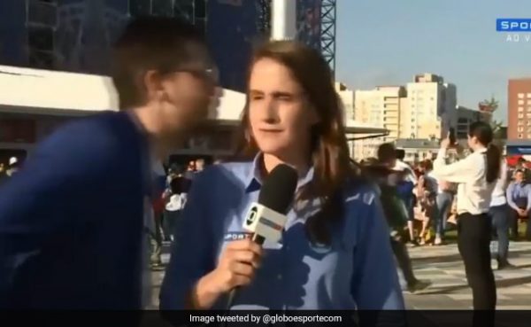 ಮಾಸ್ಕೋ: ಕೊಲಂಬಿಯ ಮೂಲದ ಪತ್ರಕರ್ತೆ ಫುಟ್ಬಾಲ್ ಪಂದ್ಯದ ಕುರಿತು ನೇರ ಪ್ರಸಾರದಲ್ಲಿ ಮಾತನಾಡುತ್ತಿದ್ದ ವೇಳೆ ಆಕೆಗೆ ಮುತ್ತು ನೀಡಿ ಅಸಭ್ಯವಾಗಿ ವರ್ತಿಸಿದ್ದ ದುಷ್ಕರ್ಮಿ ಕುರಿತ ಸುದ್ದಿ ಹಸಿರಾಗಿರುವಾಗಲೇ ಅಂತಹುದೇ ಮತ್ತೊಂದು ಪ್ರಕರಣ ನಡೆದಿದ್ದು, ಈ ಬಾರಿ ಪತ್ರಕರ್ತೆಯೇ ದುಷ್ಕರ್ಮಿಯ ಮಾನ ಹರಾಜು ಹಾಕಿದ್ದಾಳೆ.