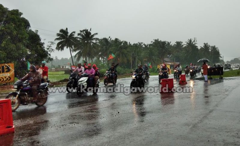 ಭಟ್ಕಳ ಯುವಮೋರ್ಚಾ ಅಧ್ಯಕ್ಷ ಲಕ್ಷ್ಮಣ ನಾಯ್ಕ ಮಾತನಾಡಿ, ಮೋದಿಯವರ ಮೇಲಿನ ಅಭಿಮಾನದಿಂದಾಗಿ ಮಳೆಯಲ್ಲಿಯೂ ರ್ಯಾಲಿ ನಡೆಸಿದ್ದು ಕಾರ್ಯಕರ್ತರ ಬೆಂಬಲ ಅತೀವವಾಗಿದೆ. ರಾಜ್ಯ ಯುವಮೋರ್ಚಾದ ವತಿಯಿಂದ ಉಸ್ತುವಾರಿ ಮಹೇಶ್ ಪೂಜಾರಿ ಮೊದಲಾದವರ ಮಾರ್ಗದರ್ಶನದಲ್ಲಿ ಈ ಕಾರ್ಯಕ್ರಮ ನಡೆದಿದ್ದು ಮುಂದಿನ ದಿನದಲ್ಲಿಯೂ ಕೂಡ ಪಕ್ಷ ಸಂಘಟನೆಗೆ ಯುವಮೋರ್ಚಾ ಇನ್ನಷ್ಟು ಕಾರ್ಯಕ್ರಮ ಹಮ್ಮಿಕೊಳ್ಳಲಿದೆ ಎಂದರು.