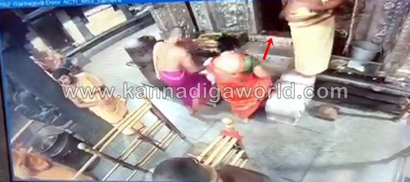 ಮೂಕಾಂಬಿಕಾ ಸನ್ನಿದಿಯ ಗರ್ಭಗುಡಿಯ ಹೊರಗಿರುವ ಲಕ್ಷ್ಮೀ ಮಂಟಪಕ್ಕೆ ಮಹಿಳೆಯೊಬ್ಬರು ಪ್ರವೇಶಿಸುವ ದೃಶ್ಯ. ಈ ಹಿಂದೆ ದೇವಸ್ಥಾನದ ಆಡಳಿತಾಧಿಕಾರಿಯಾಗಿದ್ದ ಉಮಾ ಅವರು ಈ ನವರಾತ್ರಿಯ ಸಂದರ್ಭ ಲಕ್ಷ್ಮೀ ಮಂಟಪ ಪ್ರವೇಶ ಮಾಡಿದ್ದಾರೆ. ಉಮಾ ಈ ಹಿಂದೆ ಅಧಿಕಾರಿಯಾಗಿದ್ದರು ಎಂಬ ಕಾರಣಕ್ಕೆ ಸುತ್ತಮುತ್ತ ಇದ್ದ ಕೆಲ ಅರ್ಚಕರು ಒಳ ಪ್ರವೇಶಿಸಲು ಅವಕಾಶ ಮಾಡಿದ್ದಾರೆ. ಆದ್ರೆ ಮತ್ತೊಂದು ಗುಂಪು ಇದಕ್ಕೆ ತಗಾದೆ ಎತ್ತಿದೆ. ಅರ್ಚಕರು ಉಮಾ ಅವರನ್ನು ಒಳಗೆ ಬಿಟ್ಟದ್ದು ಸರಿಯಲ್ಲ ಅಂತ ಭಕ್ತರು ದೂರುತ್ತಿದ್ದಾರೆ.