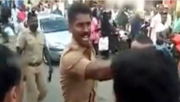 ಕನ್ಯಾಕುಮಾರಿ: ಶಬರಿಮಲೆಗೆ ಮಹಿಳೆಯರು ಪ್ರವೇಶಿಸಿರುವುದನ್ನು ಖಂಡಿಸಿ ಕೇರಳದಾದ್ಯಂತ ಪ್ರತಿಭಟನೆಗಳು ತೀವ್ರಗೊಂಡಿದ್ದು ಬಸ್ ತಡೆದ ಪ್ರತಿಭಟನಾಕಾರರಿಗೆ ಪೊಲೀಸ್ ಆವಾಜ್ ಹಾಕಿರುವ ವಿಡಿಯೋ ಇದೀಗ ವೈರಲ್ ಆಗಿದೆ.