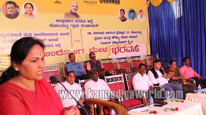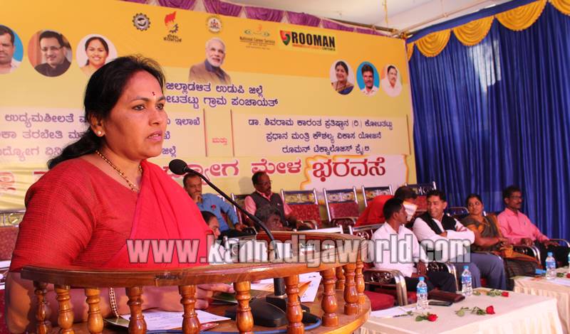 ಕಾರ್ಯಕ್ರಮವನ್ನು ಉಡುಪಿ-ಚಿಕ್ಕಮಗಳೂರು ಸಂಸದೆ ಶೋಭಾ ಕರಂದ್ಲಾಜೆ ಕಾರ್ಯಕ್ರಮ ಉದ್ಘಾಟಿಸಿ ಮಾತನಾಡಿ, ಜಿಲ್ಲೆಯ ಉದ್ಯೋಗಾಕಾಂಕ್ಷಿಗಳಿಗೆ ಅನುಕೂಲವಾಗಂತೆ ಕೇಂದ್ರ ಸರ್ಕಾರದಿಂದ ದೊರೆಯಬಹುದಾದ ಎಲ್ಲಾ ರೀತಿಯ ಸೌಲಭ್ಯಗಳನ್ನು ಉಡುಪಿ ಜಿಲ್ಲೆಗೆ ಒದಗಿಸಿದ್ದು, ಯುವಜನತೆ ಉದ್ಯೋಗ ಪಡೆಯಲು ಎಲ್ಲಾ ರೀತಿಯ ಪೂರಕ ವಾತಾವರಣ ಜಿಲ್ಲೆಯಲ್ಲಿದೆ, ಯುವ ಜನತೆ ಇದರ ಸದುಪಯೋಗ ಪಡೆಯಬೇಕು. ಉಡುಪಿ ಜಿಲ್ಲೆಯ ಯುವ ಜನತೆ ಉದ್ಯೋಗ ಪಡೆಯಲು ಅನುಕೂಲವಾಗುವಂತೆ ಜಿಟಿಟಿಸಿ ತರಬೇತಿ ಕೇಂದ್ರವನ್ನು ಉಪ್ಪೂರಿನಲ್ಲಿ ನಿರ್ಮಿಸಲಾಗುತ್ತಿದ್ದು, ಇಲ್ಲಿ ತರಬೇತಿ ಪಡೆದ ಪ್ರತಿಯೊಬ್ಬರಿಗೂ 100% ಉದೋಗ ದೊರೆಯಲಿದೆ, ಮಣಿಪಾಲದಲ್ಲಿ ಪ್ರಧಾನ ಮಂತ್ರಿ ಉದ್ಯೋಗ ಕೌಶಲ್ಯ ಕೇಂದ್ರ ತೆರೆದಿದ್ದು, ಇದರಲ್ಲಿ ಉದ್ಯೋಗ ಪಡೆಯಲು ಬೇಕಾದ ಅಗತ್ಯ ತರಬೇತಿ ಮತ್ತು ಮಾಹಿತಿ ನೀಡಲಾಗುತ್ತಿದೆ, ಇಂದ್ರಾಳಿ ರೈಲ್ವೆ ನಿಲ್ದಾಣ ಬಳಿ ರಾಮಕೃಷ್ಣ ಹೆಗಡೆ ಕೌಶಲ್ಯ ತರಬೇತಿ ಕೇಂದ್ರ ನಿರ್ಮಾಣಗೊಳ್ಳುತ್ತಿದೆ, ಜೆಮ್ಸ್ ಅಂಡ್ ಜ್ಯೂಯಲ್ಸ್ ತರಬೇತಿ ಕೇಂದ್ರ ಸಹ ಆರಂಭಗೊಂಡಿದ್ದು, ಈ ಭಾಗದ ಯುವಜನತೆಗೆ ಉದ್ಯೋಗ ಸೃಷ್ಠಿಸಲು ಎಲ್ಲಾ ರೀತಿಯ ಪ್ರಯತ್ನಗಳನ್ನು ಮಾಡಲಾಗಿದ್ದು, ಯುವ ಜನತೆ ಇದರ ಪ್ರಯೋಜನ ಪಡೆಯುವಂತೆ ಮತ್ತು ಮಹಿಳೆಯರು ಹೆಚ್ಚಿನ ಸಂಖ್ಯೆಯಲ್ಲಿ ಉದ್ಯೋಗ ಪಡೆದು ಸ್ವಾವಲಂಬಿಗಳಾಗುವಂತೆ ಶೋಭಾ ಹೇಳಿದರು.