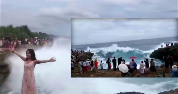 ಇಂಡೋನೇಷ್ಯಾದ ಬಾಲಿಯ ಪ್ರಸಿದ್ಧ ಪ್ರವಾಸಿ ತಾಣ ಡೆವಿಲ್ಸ್ ಟೀರ್ನಲ್ಲಿ ಪ್ರವಾಸಿಗರೊಬ್ಬರು ಮೈಮರೆತು ಫೋಟೋಗೆ ಪೋಸ್ ನೀಡುತ್ತಿದ್ದಾಗ ಧೈತ್ಯ ಅಲೆಯೊಂದು ಆಕೆಯನ್ನು ಕೊಚ್ಚಿಕೊಂಡು ಹೋಗಿದೆ. ಈ ವೀಡಿಯೋ ಇದೀಗ ಸಾಮಾಜಿಕ ತಾಣಗಳಲ್ಲಿ ವೈರಲ್ ಆಗಿದೆ. ಸಮುದ್ರದಿಂದ ಉಕ್ಕಿ ಬಂದ ಬೃಹತ್ ಅಲೆ ಕಲ್ಲಿನ ತುದಿಯಲ್ಲಿ ಮೈಮರೆತು ನಿಂತಿದ್ದ ಯುವತಿಯನ್ನು ಎತ್ತಿ ಎಸೆದಿದೆ.