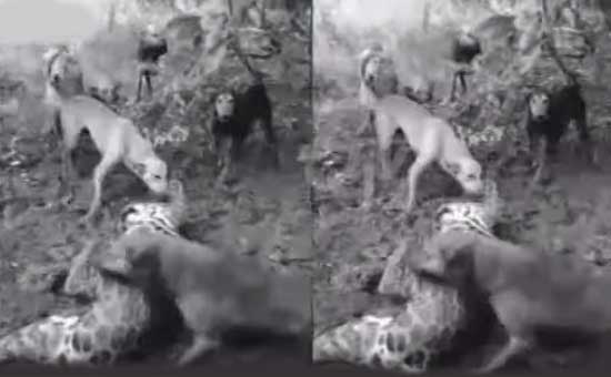 ಕೂಡಲೇ ತನ್ನ ಮೊಬೈಲ್ ತೆಗೆದು ಈ ನಾಯಿ ಮತ್ತು ಚಿರತೆಯ ಭೀಕರ ಕಾಳಗವನ್ನು ಚಿತ್ರೀಕರಿಸಿದ್ದಾನೆ. ನಾಯಿಗಳನ್ನು ಬೇಟೆಯಾಡಲು ಬಂದ ಚಿರತೆಯನ್ನು ಇಲ್ಲಿನ ಶ್ವಾನಗಳು ಸಂಘಟಿತ ಹೋರಾಟದ ಮೂಲಕ ಮಣಿಸಿವೆ. ಚಿರತೆಯನ್ನು ಸಿಕ್ಕ ಸಿಕ್ಕ ಕಡೆಯಲ್ಲೆಲಾ ಅಟ್ಟಾಡಿಸಿದ ಶ್ವಾನಸೇನೆ, ಚಿರತೆ ಮೇಲರಗಿ ಅದನ್ನು ಘಾಸಿಗೊಳಿಸಿವೆ. ಅಂತಿಮವಾಗಿ ಶ್ವಾನಗಳ ಸಂಘಟಿತ ಹೋರಾಟಕ್ಕೆ ಮಣಿದ ಚಿರತೆ, ತೀವ್ರವಾಗಿ ಗಾಯಗೊಂಡು ಅಲ್ಲಿಯೇ ಸಾವನ್ನಪ್ಪಿದೆ.