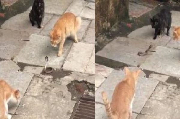 ವಿಡಿಯೋದಲ್ಲಿರುವಂತೆ ಹಾವಿನ ಸುತ್ತ ಇರುವ ನಾಲ್ಕು ಬೆಕ್ಕುಗಳು ಕುತೂಹಲದಿಂದ ನೋಡುತ್ತಿವೆ. ಹಾವು ಎಲ್ಲೂ ಹೋಗದಂತೆ ಅಡ್ಡ ಹಾಕಿವೆ.ಈ ಪೈಕಿ ಒಂದು ಬೆಕ್ಕು ಹಾವನ್ನು ಕೆಣಕುತ್ತದೆ. ಹೆಡೆ ಎತ್ತಿದ ಹಾವು ಹೋಗುತ್ತಿದ್ದರೆ ಅದರ ಹಿಂದೆಯೇ ಮೂರು ಬೆಕ್ಕುಗಳು ಹೋಗುತ್ತಿವೆ. ನಂತರ ಆ ಹಾವು ಅಲ್ಲಿಯೇ ಇದ್ದ ಪಾರ್ಕ್ ಕಡೆ ನುಸುಳುತ್ತದೆ.