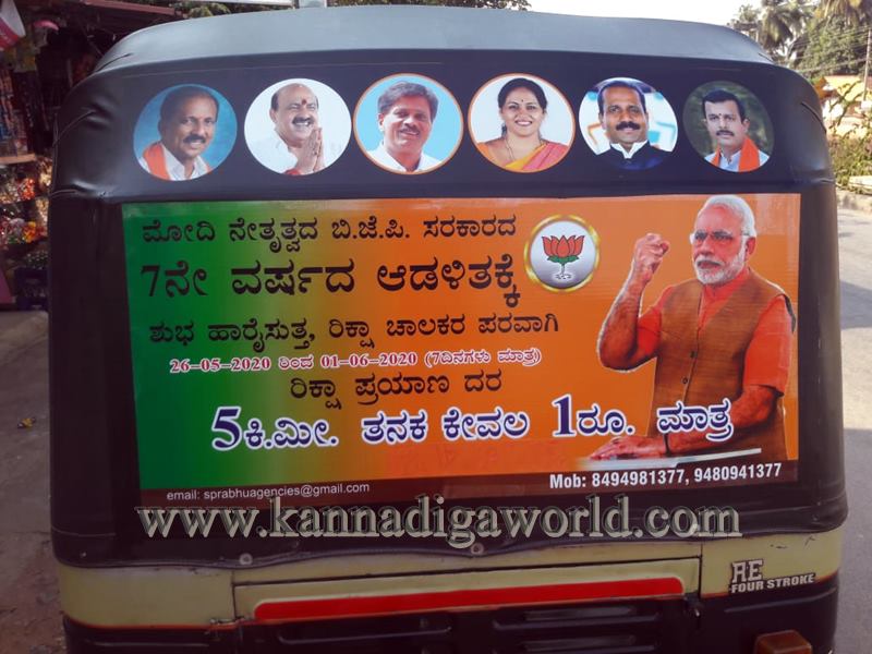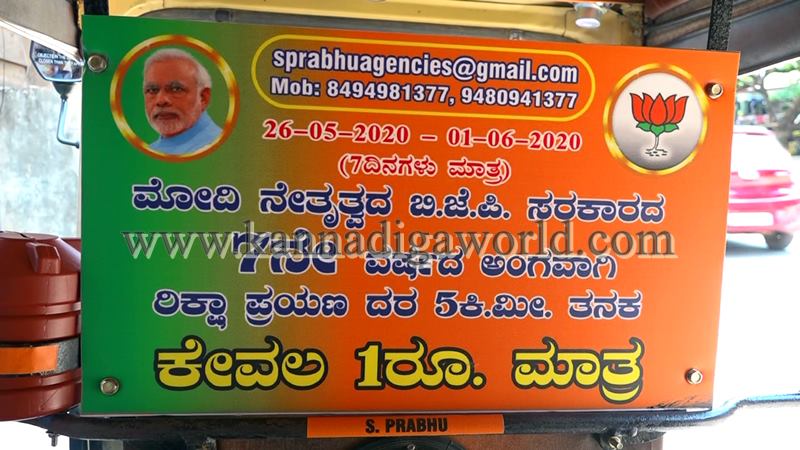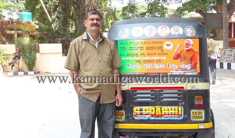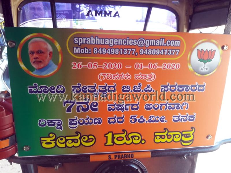ಮೋದಿ ನೇತೃತ್ವದ ಸರಕಾರ ವರ್ಷ ಕಳೆದಂತೆ 3ನೇ ವರ್ಷಕ್ಕೆ 3 ದಿನ, 5ನೇ ವರ್ಷಕ್ಕೆ 5 ದಿನ ಹಾಗೇ ಈ ಬಾರಿ 7ನೇ ವರ್ಷಕ್ಕೆ ಪಾದಾರ್ಪಣೆ ಮಾಡಿದ ಸಂಭ್ರಮಕ್ಕೆ 7 ದಿನಗಳವರೆಗೆ 1 ರೂ.ಗೆ ಆಟೋ ಸೇವಾ ಕೈಂಕರ್ಯದಲ್ಲಿ ನಿರತರಾಗಿದ್ದಾರೆ ಸತೀಶ್ ಪ್ರಭು.