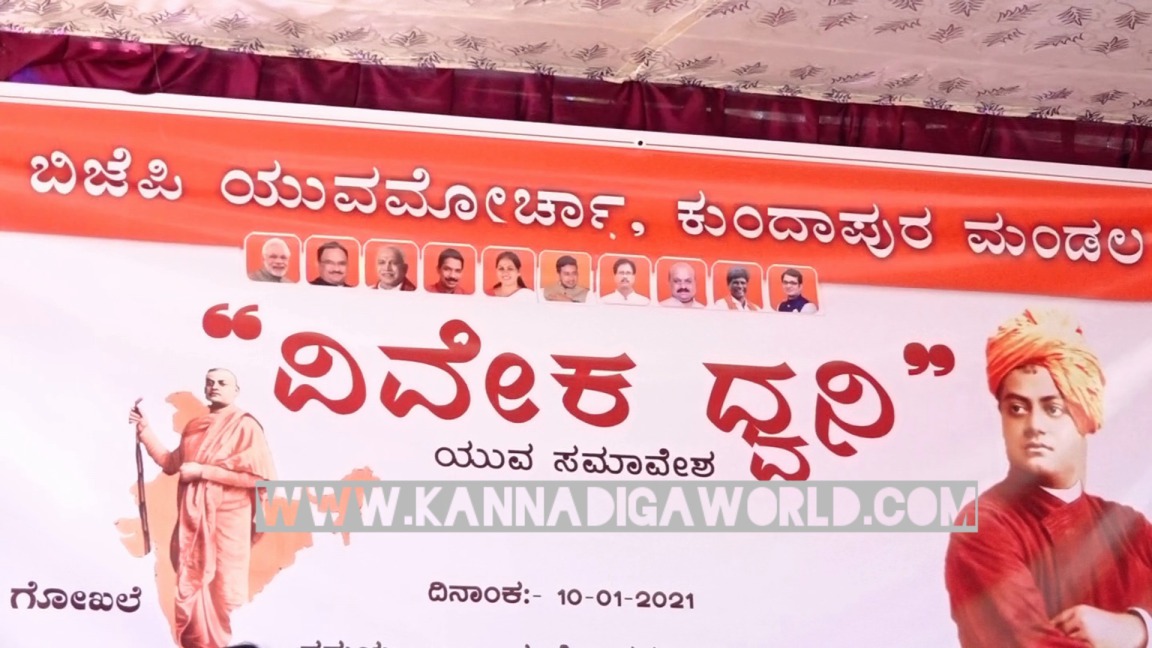ಕುಂದಾಪುರ ಕ್ಷೇತ್ರ ಬಿಜೆಪಿ ಯುವಮೋರ್ಚಾ ವತಿಯಿಂದ ಭಾನುವಾರ ಕುಂದಾಪುರದಲ್ಲಿ ನಡೆದ ವಿವೇಕ ಧ್ವನಿ ಕಾರ್ಯಕ್ರಮದಲ್ಲಿ ದಿಕ್ಸೂಚಿ ಭಾಷಣ ಮಾಡಿದರು.