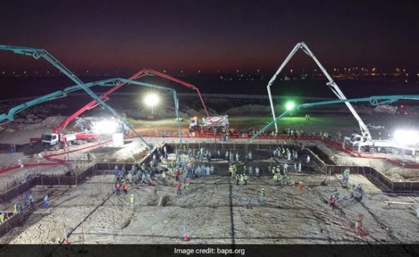 ಅಬುಧಾಬಿ: ಕೊಲ್ಲಿ ದೇಶ ಸಂಯುಕ್ತ ಅರಬ್‌ ಎಮಿರೇಟ್ಸ್‌ ರಾಜಧಾನಿ ಅಬುದಾಬಿಯಲ್ಲಿ ನಿರ್ಮಾಣಗೊಳ್ಳಲಿರುವ ಪ್ರಪ್ರಥಮ ಹಿಂದೂ ದೇವಾಲಯಕ್ಕೆ ಬೃಹತ್ ಅಡಿಪಾಯ ಹಾಕಲಾಗಿದೆ. ಈ ಅಡಿಪಾಯಕ್ಕೆ ಭಾರತದಿಂದ ಕಲ್ಲುಗಳನ್ನು ತರಿಸಿಕೊಳ್ಳಲಾಗಿದೆ.