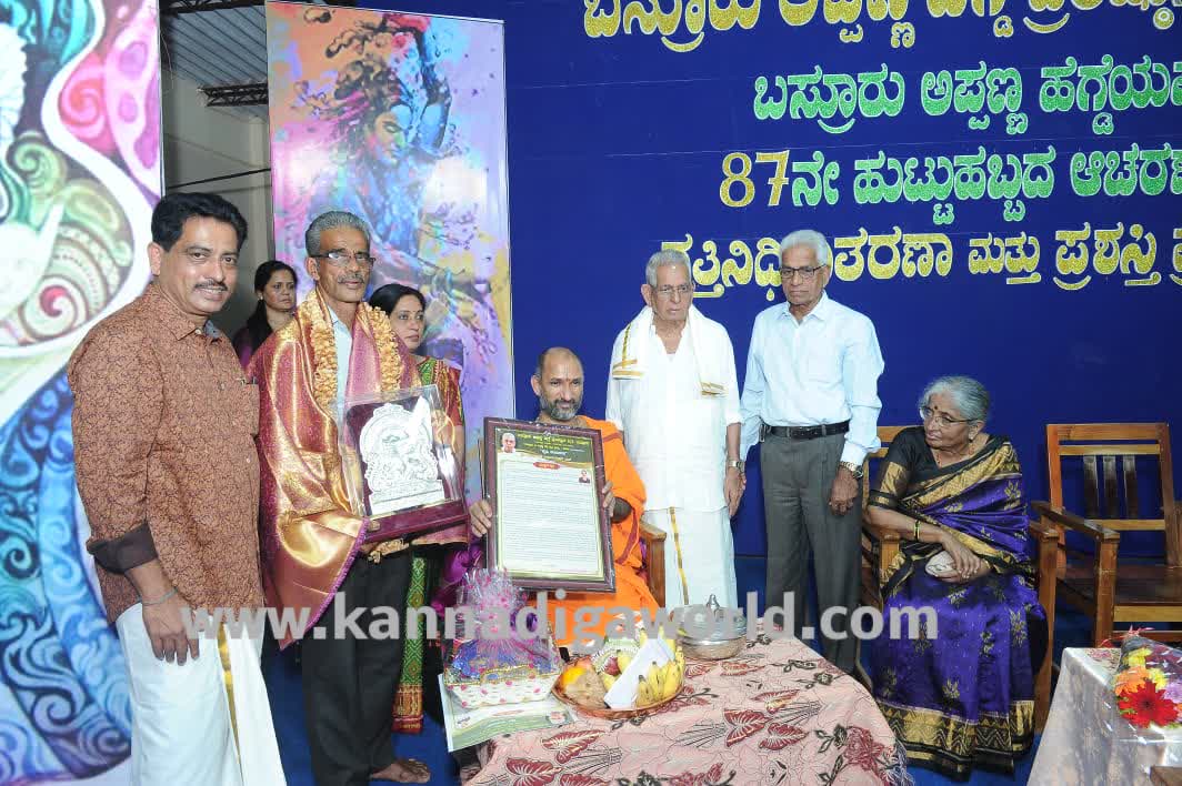ಬಸ್ರೂರು ಅಪ್ಪಣ್ಣ ಹೆಗ್ಡೆ ಪ್ರತಿಷ್ಠಾನ (ರಿ.) ಬಸ್ರೂರು ಇವರ ವತಿಯಿಂದ ಬಿ. ಅಪ್ಪಣ್ಣ ಹೆಗ್ಡೆಯವರ 87ನೇ ಹುಟ್ಟುಹಬ್ಬದ ಆಚರಣೆ ಅಂಗವಾಗಿ ಡಿ.24 ಶುಕ್ರವಾರದಂದು ಬಸ್ರೂರು ಶ್ರೀ ಶಾರದಾ ಕಾಲೇಜಿನ ಸಭಾಂಗಣದಲ್ಲಿ ಆಯೋಜಿಸಿದ ದತ್ತಿ ನಿಧಿ ವಿತರಣೆ ಹಾಗೂ ಕೃಷಿ ಪ್ರಶಸ್ತಿ ಪ್ರಧಾನ ಸಮಾರಂಭದಲ್ಲಿ‌ ಕೃಷಿ ಸಾಧಕ ಪ್ರಶಸ್ತಿ ಪ್ರದಾನ ಮಾಡಿ ಅವರು ಆಶೀರ್ವಚನ ನೀಡಿದರು.