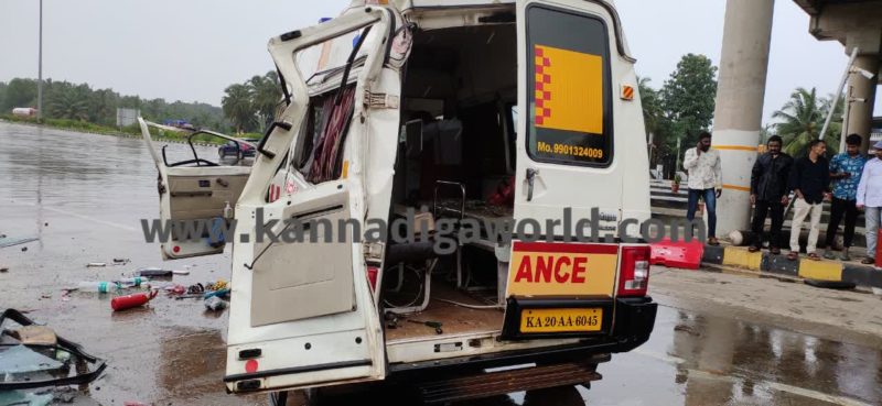 ಹೊನ್ನಾವರದಿಂದ ಕುಂದಾಪುರಕ್ಕೆ ರೋಗಿಗಳನ್ನು ಸಾಗಿಸುತ್ತಿದ್ದ ಅಂಬುಲೈನ್ಸ್ ಅತೀ ವೇಗದಿಂದ ಟೋಲ್ ಬಳಿ ನಿಯಂತ್ರಣ ತಪ್ಪಿ ಪಲ್ಟಿಯಾಗಿದೆ. ಆಂಬುಲೆನ್ಸ್ ವಾಹನ ಬರುತ್ತಿರುವ ಸೂಚನೆಯಿದ್ದ ಕಾರಣ ಟೋಲ್ ಸಿಬಂದಿಗಳು ಬ್ಯಾರಿಕೆಡ್ ತೆರವು ಮಾಡಿ ಸುಗಮ ಸಂಚಾರಕ್ಕೆ ಅನುವು ಮಾಡಕೊಡುತ್ತಿರುವಾಗಲೇ ಅಂಬುಲೆನ್ಸ್ ಪಲ್ಟಿಯಾಗಿ ಟೋಲ್ ಬಳಿ ಕಂಬಕ್ಕೆ ಡಿಕ್ಕಿ ಹೊಡೆದಿದ್ದು ಇದರಲ್ಲಿ ಮೂವರು ಸಾವನ್ನಪ್ಪಿ ಓರ್ವ ಗಂಭೀರ ಗಾಯಗೊಂಡಿದ್ದು ಕುಂದಾಪುರ ಆಸ್ಪತ್ರೆಗೆ ಸಾಗಿಸಲಾಗಿದೆ.