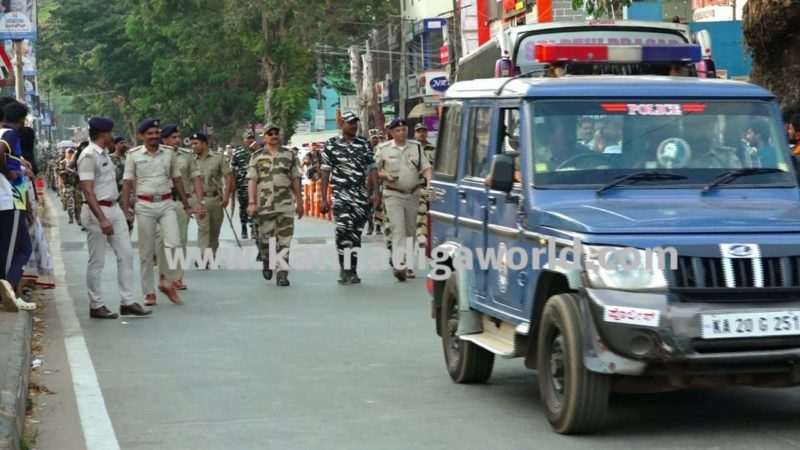 ಸಿ.ಆರ್.ಪಿ.ಎಫ್ ಫೋರ್ಸ್ನ 75 ಮಂದಿ ಹಾಗೂ ಸಿ.ಐ.ಎಸ್.ಎಫ್ 91 ಮಂದಿ ಸಹಿತ ಉಪವಿಭಾಗ ವ್ಯಾಪ್ತಿಯ ವಿವಿಧ ಠಾಣೆ ಪೊಲೀಸರು ಸೇರಿ 250ಕ್ಕೂ ಅಧಿಕ ಮಂದಿ ಎ.21 ಶುಕ್ರವಾರ ಸಂಜೆ ನೆಹರು ಮೈದಾನದಿಂದ ಕುಂದಾಪುರ ಪೇಟೆಗಳಲ್ಲಿ ಪಥಸಂಚಲನ ನಡೆಸಿದರು.