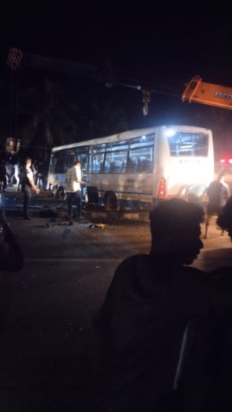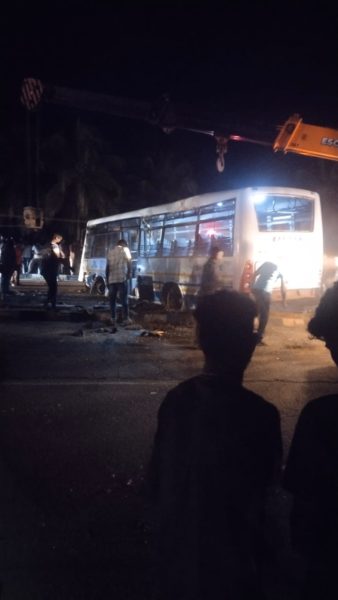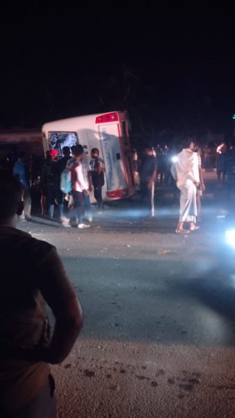 ಕುಂದಾಪುರ: ಖಾಸಗಿ ಬಸ್ ಡಿವೈಡರ್ ಗೆ ತಾಗಿದ ಪರಿಣಾಮ ಪಲ್ಟಿಯಾಗಿದ್ದು ಬಸ್ ನಲ್ಲಿದ್ದ 15 ಕ್ಕೂ ಅಧಿಕ ಮಂದಿ ಪ್ರಯಾಣಿಕರು ಗಾಯಗೊಂಡಿರುವ ಘಟನೆ ಕುಂದಾಪುರ – ಬೈಂದೂರು ರಾಷ್ಟ್ರೀಯ ಹೆದ್ದಾರಿ 66 ರ ಮುಳ್ಳಿಕಟ್ಟೆ ಸಮೀಪದ ಅರಾಟೆ ಎಂಬಲ್ಲಿ ಬುಧವಾರ ರಾತ್ರಿ ವೇಳೆ ಸಂಭವಿಸಿದೆ.