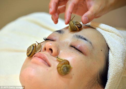 During the 60-minute treatment, which is offered at the Clinical Salon in Tokyo, the face is cleansed before snails are placed on the cheeks and forehead and allowed to move around as they please. The facial, named the Celebrity Escargot Course, costs £161 and also includes a series of facial massages, masks and the use of an electrical pulse machine.