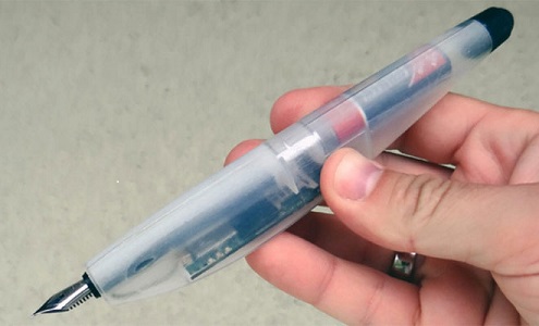 Lernstift is a regular pen with real ink, but inside is a special motion sensor and a small battery-powered Linux computer with a WiFi chip.