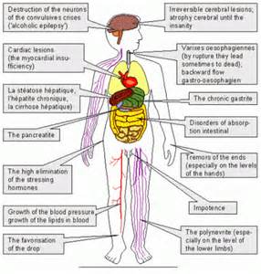 Sleeping disorders, sexual problems, infection of the esophagus, infection of the stomach, infection of the pancreas, premature dementia, varying from a reduction of memory to the serious syndrome of Korsakoff; cancer of the mouth, throat, larynx, intestines and breasts; hypertension and heart problems. Alcohol is also damaging during pregnancy. Also alcohol takes its toll in traffic.