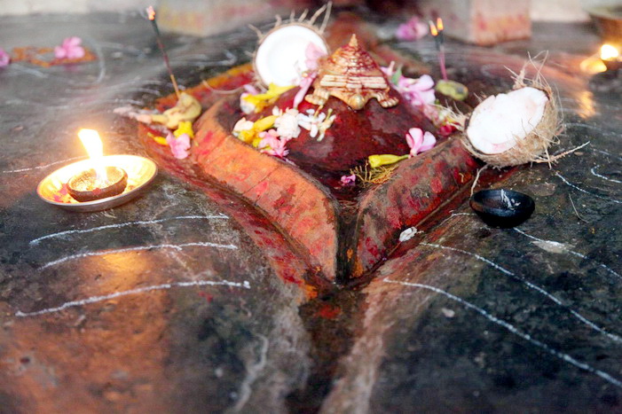 ಕುತೂಹಲಕರ ಸಂಗತಿ ಎಂದರೆ ಈ ದೇವಾಲಯದಲ್ಲಿ ದೇವಿಯ ವಿಗ್ರಹವಿಲ್ಲ ಬದಲಾಗಿ “ಯೋನಿ” ಆಕಾರದ ಒಂದು ಕಲ್ಲಿನ ರಚನೆಯಿದ್ದು ಅದರ ಮೇಲೆ ನೈಸರ್ಗಿಕವಾಗಿ ಉದ್ಭವವಾಗಿರುವಂತಹ ನೀರಿನ ಚಿಲುಮೆಯೊಂದು ಹರಿಯುವುದನ್ನು ಕಾಣಬಹುದು.