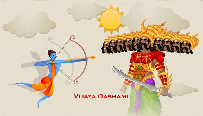 ವಿಜಯ ದಶಮಿ ದಿನದಂದು ಹತ್ತು ತಲೆಗಳ ರಾಕ್ಷಸ ರಾವಣನನ್ನು ರಾಮ ಕೊಂದು ರಾಜ್ಯವನ್ನು ಆತನ ತಮ್ಮ ವಿಭೀಷಣನಿಗೆ ಕೊಟ್ಟ ದಿನ. ರಾವಣನ ಬಂಧನದಲ್ಲಿದ್ದ ಸೀತೆಗೆ ಮುಕ್ತಿ ದೊರೆತು. ತನ್ನ ಪತಿ ರಾಮನೊಂದಿಗೆ ಸೇರಿದ ಶುಭದಿನ ಈ ವಿಜಯ ದಶಮಿ ಎಂದು ಹೇಳಲಾಗುತ್ತದೆ. ಅನ್ಯಾಯದ ವಿರುದ್ಧವಾಗಿ ಜಯಿಸಿದ ನ್ಯಾಯದ ಸಂಭ್ರಮದ ದಿನವೇ ಈ ವಿಜಯ ದಶಮಿ ಆಚರಣೆ