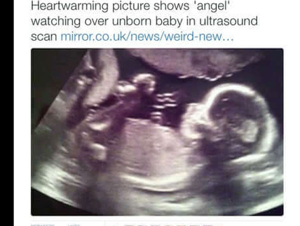 ಇಂಡಿಯಾನಾ ದೇಶದ ಓರ್ವ ತಾಯಿಯು ತನ್ನ ಅಲ್ಟ್ರಾಸೌಂಡ್ ಸ್ಕ್ಯಾನ್ ಫೋಟೋವನ್ನ ನೋಡಿ ಖುಷಿ ಪಟ್ಟು ಸುಮ್ಮನಾದಳು. ಆದರೆ ಆಕೆಯ ಸ್ನೇಹಿತೆ ಹೇಳಿದ ಮೇಲೆಯೇ ಗೊತ್ತಾಗಿದ್ದು, ಆ ಫೋಟೋದಲ್ಲಿ ಯೇಸು ಕ್ರಿಸ್ತನನ್ನು ಶಿಲುಬೆಗೆ ಏರಿಸಿರುವುದನ್ನ ಕಾಣಬಹುದು ಎಂದು. ಈಗ ಕಣ್ಣಮುಂದೆ ಅದೇ ಬರುತ್ತದೆ !