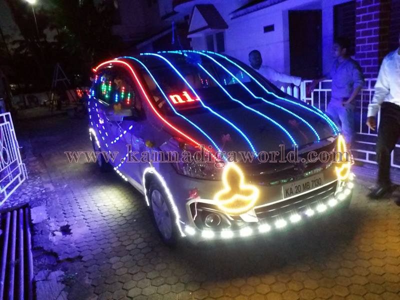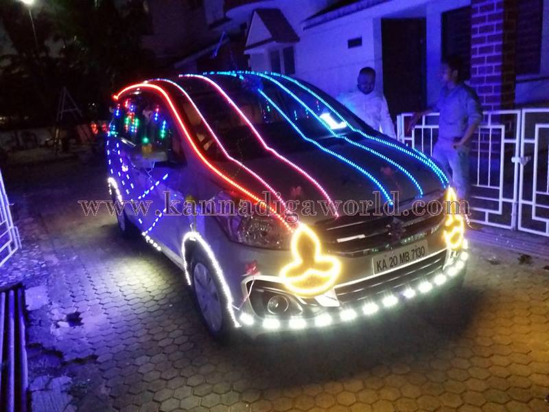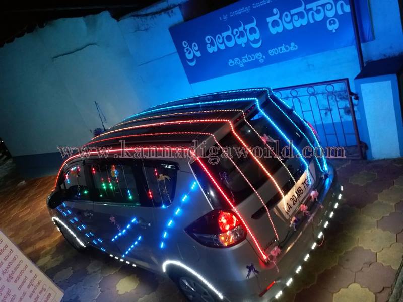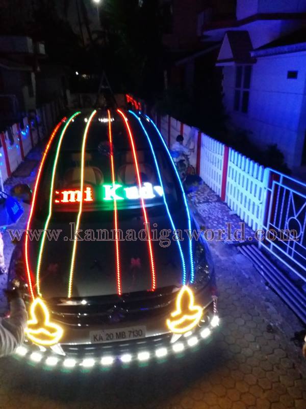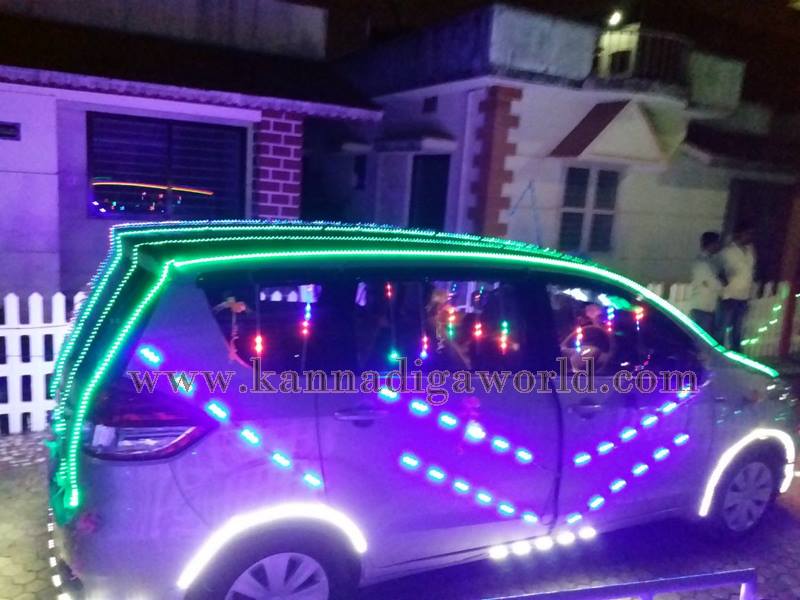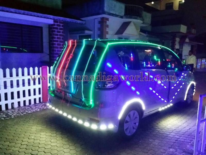 ಉಡುಪಿಯ ಶ್ರೀ ದುರ್ಗಾ ಲೈಟಿಂಗ್ಸ್ ಮಾಲೀಕರು ಹೂವಿನ‌ ಬದಲು ಡಿಜಿಟಲ್ ಲೈಟಿಂಗ್ ಅಲಂಕಾರ ಮಾಡಿ‌ ಗಮನ ಸೆಳೆದಿದ್ದಾರೆ. ಮದುಮಕ್ಕಳ ಕಾರಿಗೆ ಹೂವಿನ ಬದಲು ಎಲ್.ಇ.ಡಿ ಲೈಟಿಂಗ್ ಮಾಡಲಾಗಿದೆ. ವಿವಿಧ ಬಣ್ಣಗಳ ಈ ಡಿಜಿಟಲ್ ಅಲಂಕಾರ ಎಲ್ಲರ ಗಮನ ಸೆಳೆದಿದೆ.