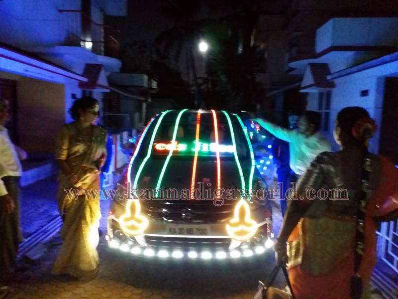ಮದುಮಕ್ಕಳ ಕಾರಿಗೆ ಡಿಜಿಟಲ್ ಲೈಟಿಂಗ್ ಅಲಂಕಾರ!