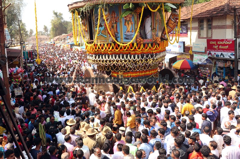 ದೇವರ ಮೂರ್ತಿಗಳು ರಥವನ್ನು ಏರಿದ ಬಳಿಕ ಕೋಟಿಲಿಂಗೇಶ್ವರ ದೇವರ ಉತ್ಸವ ಮೂರ್ತಿಯನ್ನು ರಥದಲ್ಲಿ ಇರಿಸಲಾಯಿತು. ನಂತರ ನೆರೆದ ಭಕ್ತರು ಹರಹರ ಮಹಾದೇವ ಎನ್ನುವ ಜಯಘೋಷ ಮಾಡುತ್ತಿದ್ದಂತೆ ನರ್ತನದ ಮೂಲಕ ದೇವರೊಂದಿಗೆ ರಥದ ಮೇಲೇರಿದರು. ಉತ್ಸವ ಮೂರ್ತಿಯ ರಥಾರೋಹಣವಾದ ಬಳಿಕ ಮಂಗಳಾರತಿ, ಕಟ್ಟುಕಟ್ಟಳೆ ಹಣ್ಣುಕಾಯಿ ಮಾಡಿ, ರಥದ ಮುಂದೆ ಬಲಿಕಾಯಿ ಒಡೆಯುವ ಸೇವೆಗಳನ್ನು ಸಲ್ಲಿಸಲಾಯಿತು. ಬಳಿಕ ರಥ ಬೀದಿಯಲ್ಲಿ ರಥವನ್ನುಎಳೆಯುವ ಮೂಲಕ ರಥೋತ್ಸವ ನಡೆಯಿತು. ದೇವಸ್ಥಾನ ತಂತ್ರಿ ಪ್ರಸನ್ನ ಕುಮಾರ ಐತಾಳ್ ನೇತ್ರತ್ವದಲ್ಲಿ ಧಾರ್ಮಿಕ ವಿಧಿ ನೆರವೇರಿಸಲಾಯಿತು.