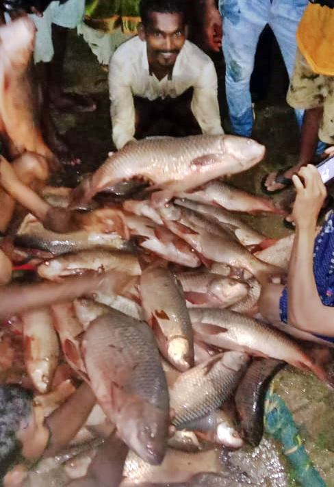 ಏಳೆಂತು ಮಂಡಿ ಯುವಕರ ತಂಡಕ್ಕೆ ಸುಮಾರು 200 ಕೆ.ಜಿ.ಗೂ ಅಧಿಕ ಕಾಟ್ಲಾ ಜಾತಿಯ ಮೀನುಗಳು ಸಿಕ್ಕಿದೆ. ಒಂದೊಂದು ಮೀನುಗಳು 6-7 ಕೆ.ಜಿ. ತೂಕದ್ದಾಗಿದ್ದು ಬೇಡಿಕೆಯಿರುವ ಹಿನ್ನೆಲೆಯಲ್ಲಿ 600-700 ರೂಪಾಯಿಗೆ ಮಾರಾಟವಾಗಿದೆ.