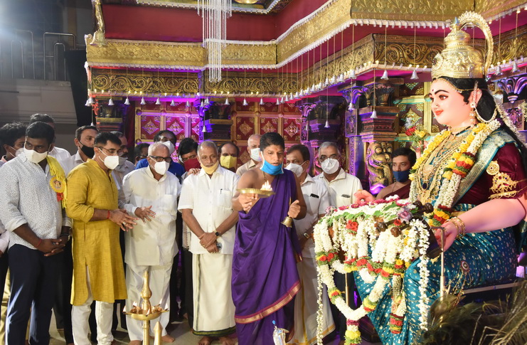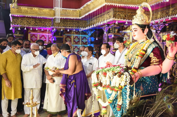 ಮಂಗಳೂರು ದಸರಾ ಕಾರ್ಯಕ್ರಮದ ಪೂರ್ವ ಭಾವಿಯಾಗಿ ಕುದ್ರೋಳಿ ಗೋಕರ್ಣನಾಥ ಕ್ಷೇತ್ರದ ಅಭಿವೃದ್ಧಿಯ ಹರಿಕಾರ ಜನಾರ್ದನ ಪೂಜಾರಿಯವರು ಕ್ಷೇತ್ರದ ದರ್ಬಾರು ಮಂಟಪದಲ್ಲಿ ಮಹಾಗಣಪತಿ, ಆದಿಶಕ್ತಿ, ನವದುರ್ಗೆಯರ ಸಹಿತ ಶಾರದಾ ಮಾತೆಯ ವಿಗ್ರಹಗಳನ್ನು ವೀಕ್ಷಿಸಿ, ಶ್ರೀ ಶಾರದಾ ಮಾತೆಗೆ ಧಾರ್ಮಿಕ ವಿಧಿಗಳೊಂದಿಗೆ ಪೂಜೆ ಸಲ್ಲಿಸಿದರು. ಬಳಿಕ ಅವರು ಉತ್ಸವದ ಧಾರ್ಮಿಕ ಕಾರ್ಯ ಕ್ರಮಕ್ಕೆ ಚಾಲನೆ ನೀಡಿದರು.