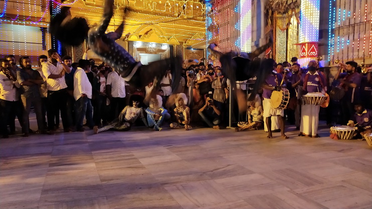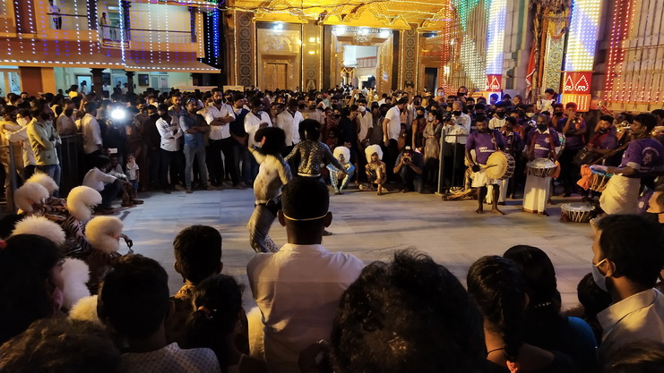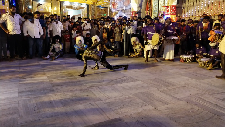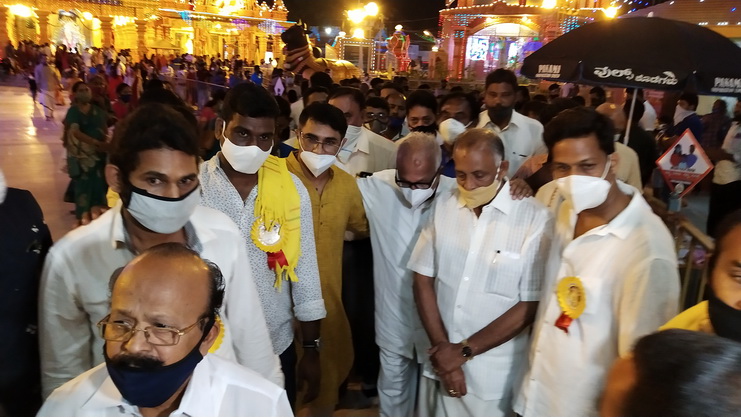 ಸುಮಾರು ಅರ್ಧಗಂಟೆ ನೃತ್ಯ ಭಜನಾ ಕಾರ್ಯಕ್ರಮ ವೀಕ್ಷಿಸಿ ಪುನೀತರಾದರು. ಬಳಿಕ ಕ್ಷೇತ್ರದ ಮುಖ್ಯದ್ವಾರದ ಎದು ಹುಲಿವೇಷ ಕುಣಿತ ವೀಕ್ಷಿಸಿ ಅವರಿಗೆ ಹಾರೈಸಿದರು.
