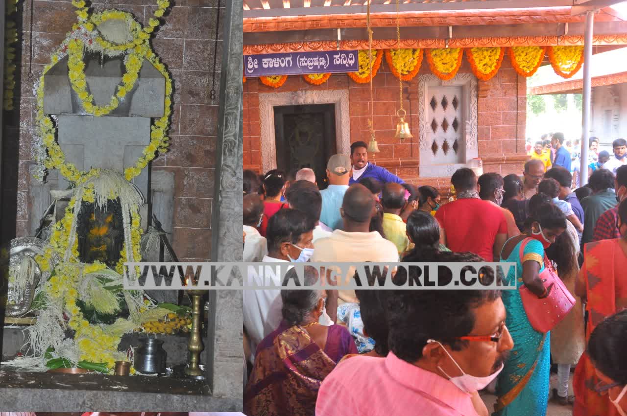 ಸೇವೆಗಳಿಲ್ಲ: ಕೊರೋನಾ ಹಿನ್ನೆಲೆಯಲ್ಲಿ ದರ್ಶನಕ್ಕೆ ಮಾತ್ರವೇ ಅವಕಾಶವೆಂದು ಹೇಳಲಾಗಿತ್ತಾದರೂ ಕೂಡ ಮನೆಯಿಂದಲೇ ಹೂಕಾಯಿ ತಂದವರಿಗೆ ಸೇವೆ ಹಾಗೂ ಹರಕೆ ಸಮರ್ಪಣೆಗೆ ಮಾತ್ರವೇ ಅವಕಾಶ ನೀಡಲಾಗಿತ್ತು. ಮಧ್ಯಾಹ್ನ ಅನ್ನಪ್ರಸಾದ ಇರಲಿಲ್ಲ. ಮಾಸ್ಕ್ ಧರಿಸಿ ಬಂದ ಭಕ್ತರು ಕಾಳಿಂಗನ ದರ್ಶನ ಪಡೆದು ವಾಪಾಸ್ಸಾಗುವ ದೃಶ್ಯ ಕಂಡುಬಂತು. ಈ ಬಾರಿ ದೇವಸ್ಥಾನದ ವಠಾರದಲ್ಲಿ ಯಾವುದೇ ಅಂಗಡಿಗಳಿಗೆ ಅವಕಾಶ ನೀಡಿರಲಿಲ್ಲ. ಡಿ.21 ರಂದು ಢಕ್ಕೆಬಲಿ ಮೊದಲಾದ ಯಾವುದೇ ಕಟ್ಟುಕಟ್ಟಳೆ ಸೇವೆ ಹಾಗೂ ತುಲಾಭಾರ ಸೇವೆ ಇರುವುದಿಲ್ಲ.