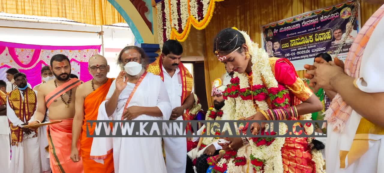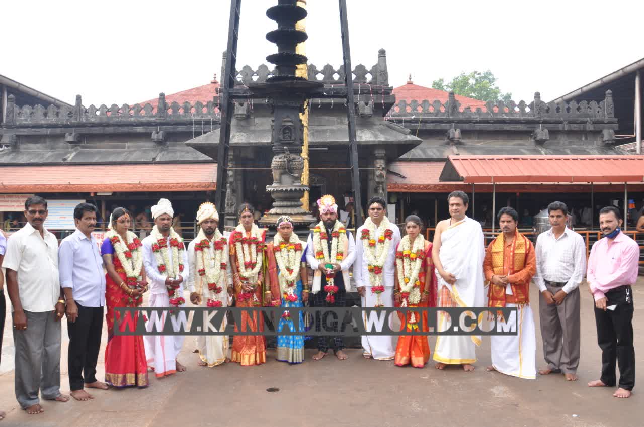 ಇಂದು ಗಜಾನನ ಜೋಯಿಷರ ನೇತೃತ್ವದಲ್ಲಿ ಹಿಂದೂ ಸಂಪ್ರದಾಯದಂತೆ ನಾಲ್ವರು ಜೋಡಿ ಹಸೆಮಣೆ ಏರಿದರು. ಆರ್ಟ್ ಆಫ್ ಲಿವಿಂಗ್ ಸಂಸ್ಥೆಯ ಶ್ರೀ ರವಿಶಂಕರ್ ಗುರೂಜಿ ನವಜೋಡಿಗೆ ಆಶೀರ್ವದಿಸಿದರು. ದೇವಳದ ವತಿಯಿಂದ ದಂಪತಿಗಳನ್ನು ಗೌರವಿಸಲಾಯಿತು.