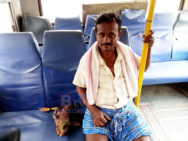 ಕೋಳಿಗೂ ಟಿಕೆಟ್ ಕೊಟ್ಟಿದ್ದಕ್ಕೆ ಪ್ರಯಾಣಿಕ ತನ್ನ ಪಕ್ಕದ ಸೀಟ್ನಲ್ಲೇ ಕೋಳಿಯನ್ನೂ ಕೂರಿಸಿಕೊಂಡು ಪ್ರಯಾಣಿಸಿದ್ದಾನೆ. ಸದ್ಯ ಈ ಫೋಟೋ ವೈರಲ್ ಆಗಿದೆ.