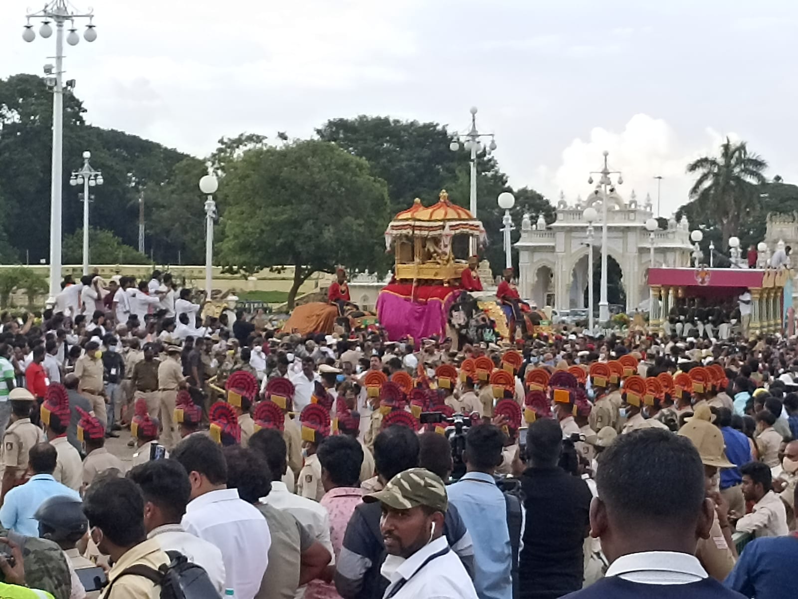 ಸರ್ವಾಲಂಕಾರ ಭೂಷಿತನಾಗಿದ್ದ ಕ್ಯಾಪ್ಟನ್ ಅಭಿಮನ್ಯು 750 ಕೆಜಿ ತೂಕದ ಅಂಬಾರಿ ಮತ್ತು ಅದರೊಳಗಿನ ತಾಯಿ ಚಾಮುಂಡೇಶ್ವರಿಯನ್ನು ಹೊತ್ತು ರಾಜಗಾಂಭೀರ್ಯದಿಂದ ಹೆಜ್ಜೆ ಹಾಕಿದ್ದು ಆತನ ಎಡಬಲದಲ್ಲಿ ಕುಮ್ಕಿ ಆನೆಗಳು ಸಾಥ್ ನೀಡಿದವು. ಸಾಂಪ್ರದಾಯಿಕ ಅಲಂಕಾರದಿಂದ ಅಂಬಾರಿ ಕಂಗೊಳಿಸುತ್ತಿತ್ತು.