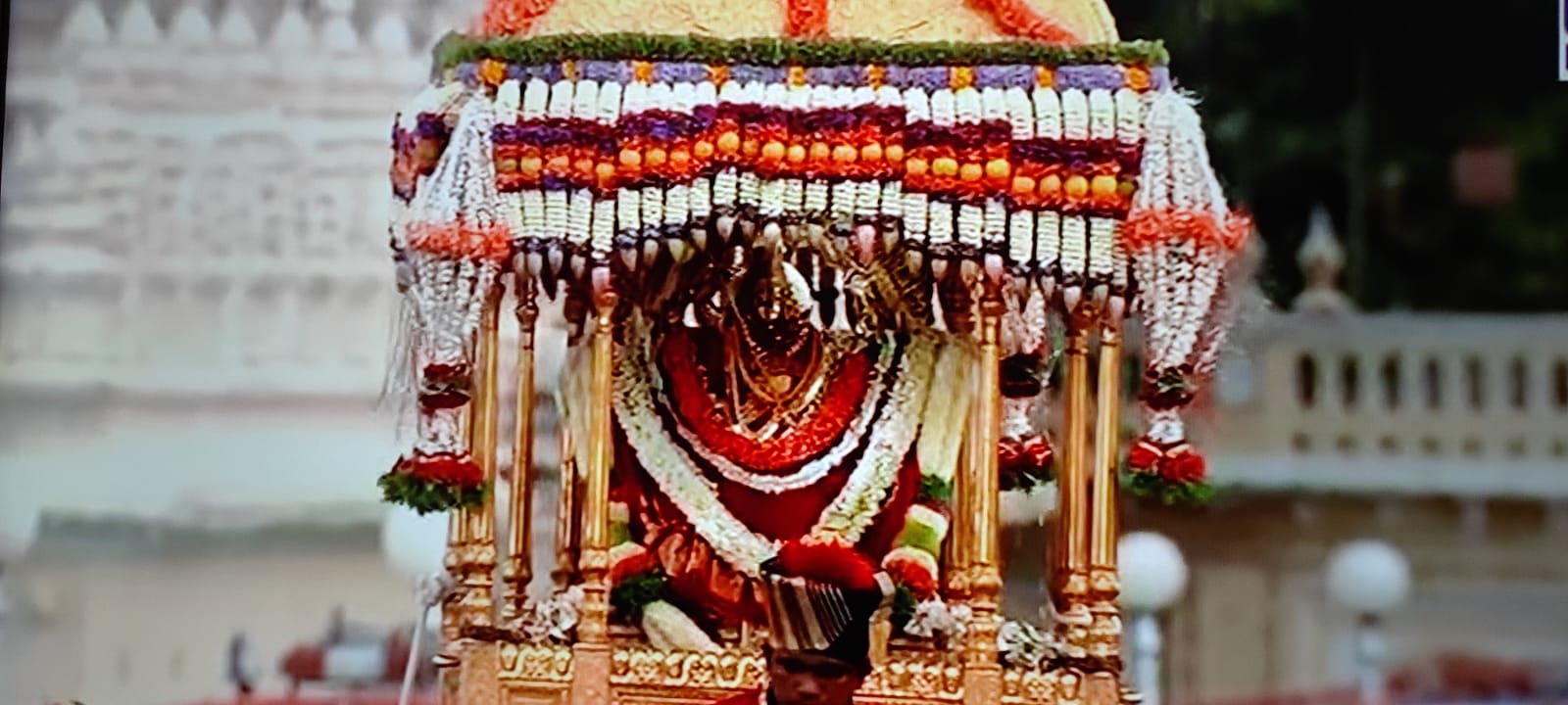 ಅಲಂಕೃತಗೊಂಡ ದೇವಿಯನ್ನು ನೋಡಲು ಚಾಮುಂಡಿಬೆಟ್ಟಕ್ಕೆ ಭಕ್ತ ಸಾಗರವೇ ಹರಿದುಬಂದಿತ್ತು. ನಾದಸ್ವರ ತಂಡ, ಪೊಲೀಸ್ ಬ್ಯಾಂಡ್, ಭಜನಾ ತಂಡ, ವೇದಘೋಷದೊಂದಿಗೆ ತೆರೆದ ವಾಹನದಲ್ಲಿ ಅರಮನೆಗೆ ಕರೆತರುತ್ತಿದ್ದ ಉತ್ಸವ ಮೂರ್ತಿಯನ್ನು ಕಣ್ತುಂಬಿಕೊಳ್ಳಲು ಬೆಟ್ಟದ ಪ್ರವೇಶದ್ವಾರ, ರಸ್ತೆಯ ಇಕ್ಕೆಲಗಳಲ್ಲಿ ಭಕ್ತ ಸಾಗರವಿತ್ತು.