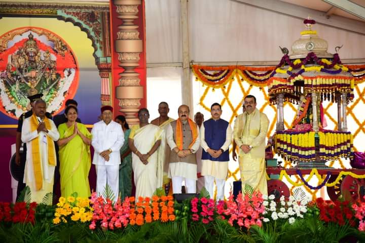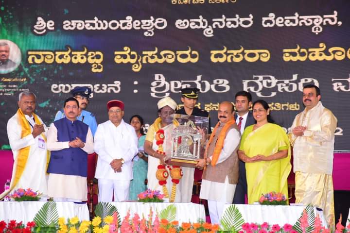 ದಸರಾ ಉದ್ಘಾಟನೆಗೆ ತನ್ನನ್ನು ಆಹ್ವಾನಿಸಿರುವುದು ಬಹಳ ಸಂತಸ ತಂದಿದೆ. ಕಲಬುರುಗಿ ಸೂಫಿಸಂತರ ನಾಡಾಗಿತ್ತು. ಈ ರಾಜ್ಯ ಬಸವಣ್ಣ, ಅಲ್ಲಮಪ್ರಭು ಹಲವು ಸಂತರ ನಾಡು. ಭಕ್ತಿ, ಸ್ವಾತಂತ್ರ್ಯಕ್ಕೆ ಕರ್ನಾಟಕ ಹೆಸರುವಾಸಿ. ಬಸವಣ್ಣ ಅಲ್ಲಮಪ್ರಭು ಆದರ್ಶ ವ್ಯಕ್ತಿಗಳಾಗಿದ್ದರು. ಅವರ ವಚನ ಜನತಂತ್ರ ವ್ಯವಸ್ಥೆಗೆ ಮಾದರಿಯಾಗಿದೆ. ದಸರಾ ಪರಂಪರೆ ಇಂದಿಗೂ ಮುಂದುವರೆಯುತ್ತಿರುವುದು ನಮ್ಮ ಹೆಮ್ಮೆ. ರಾಜ್ಯ ಸರ್ಕಾರದ ಪ್ರಯತ್ನದಿಂದ ಮತ್ತಷ್ಟು ವೈಭವೋಪೂರಿತವಾಗಿ ದಸರಾ ಆಚರಿಸಲಾಗುತ್ತಿದೆ. ರಾಣಿ ಅಬ್ಬಕ್ಕ, ಕಿತ್ತೂರು ರಾಣಿ ಚನ್ನಮ್ಮರಂತಹ ವೀರವನಿತೆಯರಿದ್ದಾರೆ. ಮೈಸೂರು ದಸರಾ ಭಾರತೀಯ ಸಂಸ್ಕೃತಿ ಪ್ರತೀಕ . ಮಹಿಳಾ ಪ್ರಾಧಿನ್ಯತೆಯೇ ದಸರಾ ವಿಶೇಷ. ಈ ಪರಂಪರೆಯಲ್ಲಿ ಭಾಗಿಯಾಗಲು ಅವಕಾಶ ನೀಡಿದ್ದಕ್ಕೆ ಕೃತಜ್ಞತೆ ಸಲ್ಲಿಸುತ್ತೇನೆ ಎಂದು ದ್ರೌಪದಿ ಮುರ್ಮು ಅವರು ಹೇಳಿದರು.