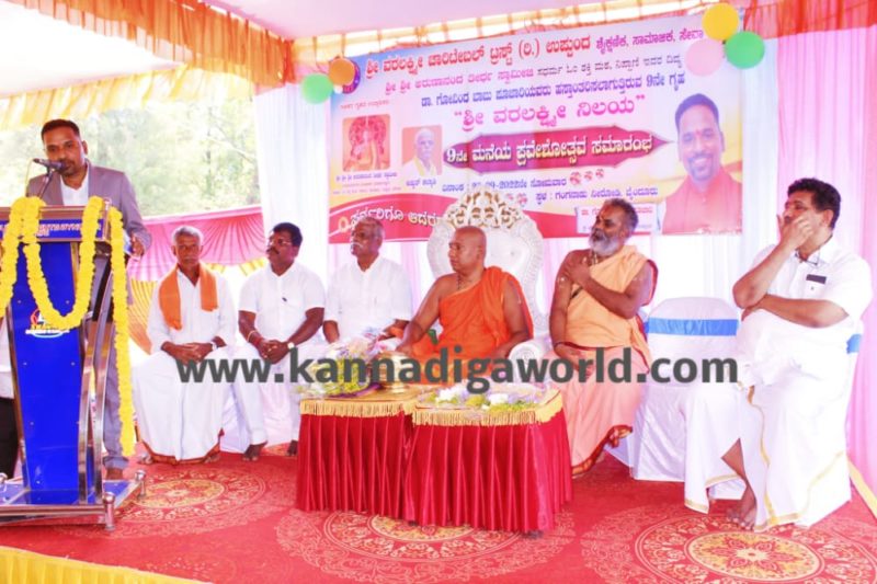 ಬಳಿಕ ಆಶೀರ್ವಚನ ನೀಡಿದ ಅವರು, ಪುಣ್ಯದಿಂದ ಪಡೆದ ಮಾನವ ಜನ್ಮವನ್ನು ಸತ್ಕಾರ್ಯದ ಮೂಲಕ ಯಶಸ್ವಿಗೊಳಿಸಿಕೊಳ್ಳಬೇಕಿದೆ. ನಮ್ಮನ್ನು ದೇವಯಜ್ಞ, ಪಿತೃಯಜ್ಞ, ಋಷಿಯಜ್ಞ, ಭೂತಯಜ್ಞದ ಜೊತೆಗೆ ನಾವು ಸಮಾಜಕ್ಕೇನು ಕೊಟ್ಟಿದ್ದೇವೆ ಎನ್ನುವ ಕಲ್ಪನೆಯ ಸ್ವಯಜ್ಞಗಳಂತಹ ಪಂಚಯಜ್ಞಗಳನ್ನು ಮಾನವನು ಜೀವಿತಾವಧಿಯಲ್ಲಿ ಮಾಡುವುದು ಅಗತ್ಯ. ಪರೋಪಕಾರದ ಚಿಂತನೆಯಲ್ಲಿ ತನ್ನ ಸಂಪಾದನೆಯಲ್ಲಿ ದೀನ, ದಲಿತರು, ಬಡವರ ಉದ್ದಾರಕ್ಕಾಗಿ ವಿನಿಯೋಗಿಸುತ್ತಿರುವುದು ಶ್ಲಾಘನೀಯ ಕಾರ್ಯವಾಗಿದೆ. ಬ್ರಹ್ಮಶ್ರೀ ನಾರಾಯಣ ಗುರುಗಳ ತತ್ವದಡಿಯಲ್ಲಿ ಇವರು ಮಾಡುತ್ತಿರುವ ಕೆಲಸ ಎಲ್ಲರಿಗೂ ಮಾದರಿಯಾಗಿದ್ದು ಇವರಿಗೆ ಇನ್ನಷ್ಟು ಬಲ ನೀಡುವ ಕೆಲಸವನ್ನು ಈ ಭಾಗದ ಜನರು ಮಾಡಬೇಕು ಎಂದರು.