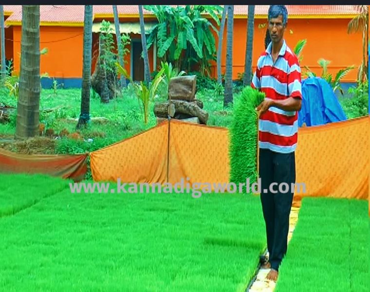 ಈ ಬಾರಿ ಹೊಸ ಪ್ರಯೋಗ: ಈ ಸಾಲಿನಲ್ಲಿ 24 ಎಕರೆ ಗದ್ದೆಯಲ್ಲಿ ಮ್ಯಾಟ್ ಪದ್ಧತಿ ಮೂಲಕ ಭತ್ತದ ಕೃಷಿ ಮಾಡಲು ಚಿಂತಿಸಿದ ಗಂಗಾಧರ್ ಅವರು, ಮಹೀಂದ್ರಾ ಕಂಪೆನಿಯ ಪೆಟ್ರೋಲ್ ಚಾಲಿತ ನಾಟಿ ಯಂತ್ರವನ್ನು ಖರೀದಿಸಿದ್ದಾರೆ. ಹಾಗೆಯೇ ನಾಟಿಗೆ 1500 ಮ್ಯಾಟ್ ನೇಜಿಯನ್ನು ಮನೆಯಂಗಳದಲ್ಲಿ ಸಿದ್ಧಪಡಿಸಿದ್ದಾರೆ. ಮ್ಯಾಟ್, ಕೊಟ್ಟಿಗೆ ಗೊಬ್ಬರ, ಗುಡ್ಡೆ ಮಣ್ಣು, ಹೊಯಿಗೆ ಮಣ್ಣು ಸೇರಿಸಿ ಗಾಳಿಸಿಕೊಂಡು ಹದಗೊಳಿಸಿ ನೀರು ಸಿಂಪಡಿಸಿ 1 ಮ್ಯಾಟ್ ಗೆ 110 ಗ್ರಾಂ ಭತ್ತದ ಬೀಜ ಹಾಕಿದ್ದು 18-19 ದಿನಗಳಲ್ಲಿ ನಾಟಿಗೆ ಸಿದ್ದವಾಗಿದೆ. 1 ಎಕರೆಗೆ ಅಂದಾಜು 70 ಮ್ಯಾಟ್ ಅಗತ್ಯವಿದ್ದು 24 ಎಕ್ರೆಗೆ 1800-200 ಮ್ಯಾಟ್ ಅಗತ್ಯವಿದೆ ಎಂದು ಅವರು ಹೇಳುತ್ತಾರೆ. ಮಾನವ ಶ್ರಮದಲ್ಲಿ ಈ ಕೆಲಸ ಮಾಡಿದರೆ ಸರಾಸರಿ 15 ದಿನಕ್ಕೂ ಅಧಿಕ ಬೇಕಿದೆ. ಕೂಲಿಯಾಳುಗಳ ಕೊರತೆ, ಸಮಯಾವಕಾಶದ ಹಿನ್ನೆಲೆ ಇವರ ಆಲೋಚನೆಯಂತೆ ಯಾಂತ್ರೀಕೃತವಾಗಿ ಮಾಡಿದರೆ 24 ಎಕರೆ ಕೇವಲ 4-5 ದಿನಗಳಲ್ಲಿ ಮನೆಯವರೇ ಸೇರಿ ನಾಟಿ ಮಾಡಬಹುದು.