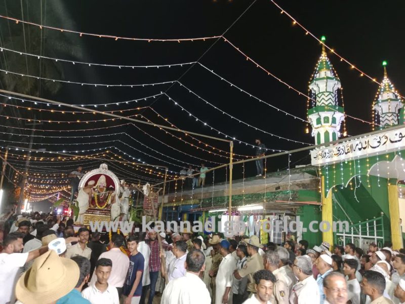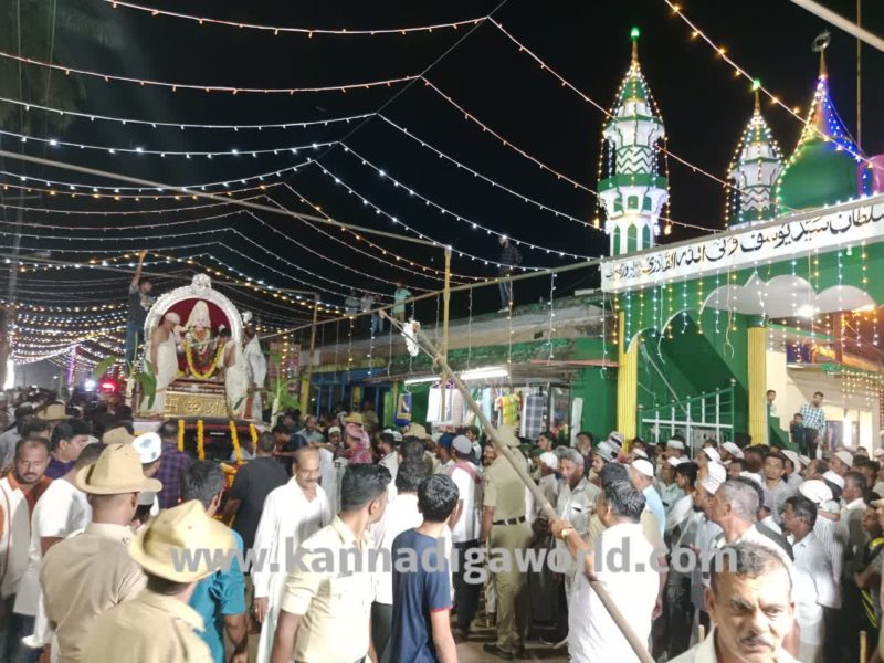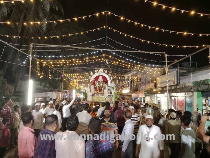 ಉರೂಸ್ ಹಿನ್ನೆಲೆ ದರ್ಗಾ ಸಮೀಪದಿಂದ ಫೆರ್ರಿ ರಸ್ತೆ ಪಾರ್ಕ್ ತನಕ ವಿದ್ಯುತ್ ದೀಪಾಲಂಕಾರ ಮಾಡಲಾಗಿತ್ತು. ರಾಮಮಂದಿರ, ವೆಂಕಟರಮಣ ದೇವಸ್ಥಾನದಲ್ಲಿನ ಶಾರದಾ ಮೂರ್ತಿ ಮೆರವಣಿಗೆ ಸಾಗುವಾಗ ಎತ್ತರದ ವಿದ್ಯುತ್ ದೀಪಾಲಂಕಾರ ಹಾಗೂ ಆರಂಭದಲ್ಲಿ ಹಾಕಿದ ಸ್ವಾಗತ ಕಮಾನು ತಡೆಯಾಗುವ ಹಂತದಲ್ಲಿದ್ದು ಕಮಾನಿನ ಮೇಲ್ಭಾಗವನ್ನು ಮುಸ್ಲೀಂ ಬಾಂಧವರು ತೆರವು ಮಾಡಿದರು. ವಿದ್ಯುತ್ ದೀಪಾಲಂಕಾರಕ್ಕೆ ತಗುಲದಂತೆ ಅಗತ್ಯಕ್ರಮಗಳನ್ನು ಮಾಡಿಕೊಟ್ಟು ಮೆರವಣಿಗೆ ಸುಗಮವಾಗಿ ಸಾಗಲು ಅನುವು ಮಾಡಿಕೊಟ್ಟರು. ಮೆರವಣಿಗೆಯಲ್ಲೂ ಕೂಡ ಆ ಭಾಗದಲ್ಲಿ ತೆರಳುವಾಗ ಜಾಗಟೆ, ಚಂಡೆ ಬಾರಿಸುವುದನ್ನು ನಿಲ್ಲಿಸಿ ಮುಸ್ಲೀಂ ಸಮುದಾಯದ ಧಾರ್ಮಿಕ ಭಾವನೆಗಳಿಗೆ ಸ್ಪಂದಿಸಿದರು. ಮೆರವಣಿಗೆ ಸಾಗುವಾಗ ದರ್ಗಾ ಬಳಿ ಜಮಾಯಿಸಿದ್ದ ಮುಸ್ಲೀಂ ಬಾಂಧವರು ಪರಸ್ಪರ ಹಬ್ಬಕ್ಕೆ ಶುಭಕೋರಿದರು.