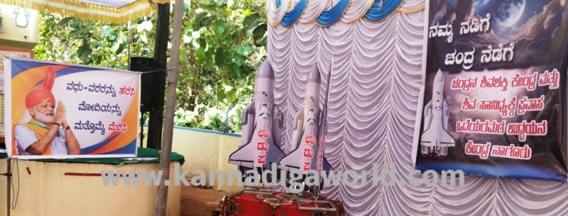 ಮದುವೆ ಮನೆಗೆ ಪ್ರವೇಶ ದ್ವಾರದಲ್ಲಿ ಹಾಕಿದ ಮೋದಿ ಬ್ಯಾನರ್ ವ್ಯವಸ್ಥೆಯ ಮೊದಲ ಅಚ್ಚರಿ. ಒಂದು ಬದಿಯಲ್ಲಿ ತಲೆಗೆ ರುಮಾಲು ಸುತ್ತಿ ಕೈಮುಗಿದ ಭಂಗಿಯಲ್ಲಿ ಮೋದಿ ಚಿತ್ರವಿದ್ದರೆ, ಮತ್ತೊಂದು ಕಡೆ ವಧೂವರರನ್ನು ಹರಸಿ, ಮೋದಿಯನ್ನು ಮತ್ತೊಮ್ಮೆ ಮೆರಸಿ ಎನ್ನುವ ನುಡಿಕಟ್ಟು ಮೋದಿ ಬೆಂಬಲಿಗರಿಗೆ ಖುಷಿ ಕೊಟ್ಟಿತು. ಇನ್ನು ಕಲ್ಯಾಣ ಮಂಟಪ ಪ್ರವೇಶದ ಬಳಿ ಅಲಂಕರಿಸಿದ ತೊಟ್ಟಿಲು, ಅದರ ನೆತ್ತಿಯಲ್ಲಿ ತೂಗುಹಾಕಿದ ಚಿತ್ರ ಮತ್ತೊಂದು ಅಚ್ಚರಿ. ವಧೂವವರ ಬ್ಲಾಕ್ ಎಂಡ್ ವೈಟ್ ಚಿತ್ರದ ಮೇಲ್ಗಡೆ ನಮ್ಮ ಹೊಸಾ ಚಿತ್ರದ ಬಿಡುಗಡೆ ದಿನಾಂಕ ನಿರೀಕ್ಷಿಸಿ! ಚಂದ್ರಯಾನದ ಯಶಸ್ಸಿನಿಂದ ಪ್ರೇರಿತ ಚಂದ್ರಯಾನಕ್ಕೆ ಸಿದ್ದವಾದ ಉಡುಪ ರಾಕೆಟ್. 75 ಕೆಜಿ ಒಳಗಿನವರಿಗೆ ಮಾತ್ರ ಪ್ರವೇಶದ ಕಂಡೀಶನ್. ಸಭಾಭವನದ ಸುತ್ತಾಮುತ್ತಾ ಉತ್ತರ ಭೂಪನ (ಬೀಚಿ) ಪಂಚಿಂಗ್ ಡೈಲಾಗ್ ಮತ್ತೊಂದು ಅಚ್ಚರಿ. ಇನ್ನು ಮದುವೆ ಮನೆಯಲ್ಲಿ ಚಟಗಳಿಗೂ ಮಣೆ ಹಾಕಲಾಗಿದೆ. ಕವಳ (ಎಲೆ ಅಡಕೆ) ಗಂಡಸರಿಗೆ ನಶ್ಯ, ಹೆಂಗಸರಿಗೆ ನಶ್ಯ, ಪುರೋಹಿತರಿಗೆ ನಂಜಿನಗೂಡು ನಶ್ಯ.