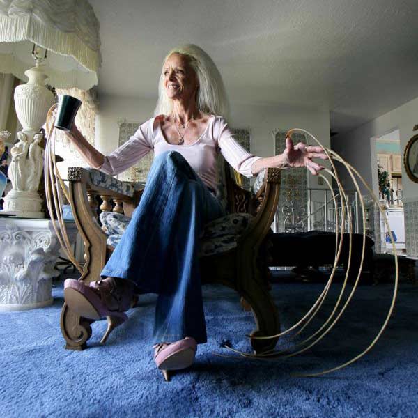 The longest fingernails belonged to Lee Redmond (USA), who started to grow them in 1979 and carefully manicured them to reach a total length of 8.65 m (28 ft 4.5 in) as measured on the set of Lo show dei record in Madrid, Spain, on 23 February 2008. Lee lost her nails in an automobile accident in early 2009.
