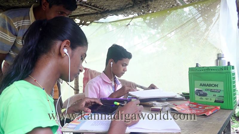 ಅಂದ ಹಾಗೆ ಈ ವಿದ್ಯಾರ್ಥಿಗಳು ಗ್ರಾಮೀಣ ಪ್ರದೇಶದವರಾದ್ದರಿಂದ ಸೂಕ್ತ ನೆಟ್ವರ್ಕ್ ಸಿಗದೆ ಕಷ್ಟ ಪಡುವಂತಾಗಿದೆ. ನೆಟ್‌ವರ್ಕ್ ಎಲ್ಲಿಸಿಗುತ್ತದೆ ಎಂಬ ಹುಡುಕಾಟದಲ್ಲಿ ಮನೆಯಿಂದ 300 ಮೀಟರ್ ಅಂತರ ಬೆಟ್ಟದ ನೆತ್ತಿಮೇಲೆ ನೆಟ್‌ವರ್ಕ್ ಸಿಕ್ಕಿದೆ. ನೆಟ್‌ವರ್ಕ್ ಸಿಕ್ಕ ಸ್ಥಳದಲ್ಲಿ ಸಣ್ಣದೊಂದು ಚಪ್ಪರ ಮಾಡಿ ಅದರೊಳಗೆ ಮಕ್ಕಳಿಗೆ ಓದಲು ತಂದೆ ತಾಯಿ ವ್ಯವಸ್ಥೆ ಮಾಡಿಕೊಟ್ಟಿದ್ದು, ಸುತ್ತಾ ಕಾಡಿದ್ದರಿಂದ ಪೋಷಕರು ಕಾದು ಕೂರುತ್ತಾರೆ. ಬಹುತೇಕ ಬೆಳಿಗ್ಗೆನಿಂದ ಸಂಜೆ‌ ತನಕ ಆನ್ಲೈನ್ ಕ್ಲಾಸ್ ನಡೆಯಲಿದ್ದು ಈ ವಿದ್ಯಾರ್ಥಿಗಳಿಬ್ಬರ ಕಿರಿಯ ಸಹೋದರಿ ತಿನ್ನೋದಕ್ಕೆ ಕುಡಿಯೋಕೆ ಬೇಕಾದ್ದನ್ನು ಮನೆಯಿಂದ ಕೊಟ್ಟು ಬರುತ್ತಾಳೆ.