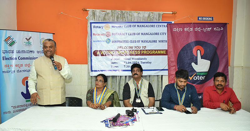 ಅವರು ತಾ.23.04.2024ರಂದು ನಗರದ ವುಡ್ಲ್ಯಾಂಡ್ ಸಭಾಂಗಣದಲ್ಲಿ ರೋಟರಿ ಕ್ಲಬ್ ಮಂಗಳೂರು ಸೆಂಟ್ರಲ್, ರೋರ್ಯಾಕ್ಟ್ ಕ್ಲಬ್ ಮಂಗಳೂರು ಸಿಟಿ ಹಾಗೂ ಇನ್ನರ್ವೀಲ್ ಕ್ಲಬ್ ಮಂಗಳೂರು ನಾರ್ತ್ ಸಂಸ್ಥೆಗಳ ಆಶ್ರಯದಲ್ಲಿ ದ.ಕ. ಜಿಲ್ಲಾ ಸ್ವೀಪ್ ಸಮಿತಿಯ ಸಯೋಗದೊಂದಿಗೆ ಆಯೋಜಿಸಿದ “ಮತದಾನದ ಮಾಹಿತಿ, ಜಾಗೃತಿ ಅಭಿಯಾನ” ಕಾರ್ಯಕ್ರಮದಲ್ಲಿ ಸಂಪನ್ಮೂಲ ವ್ಯಕ್ತಿಯಾಗಿ ಭಾಗವಹಿಸಿ ಸದಸ್ಯರನ್ನು ಉದ್ದೇಶಿಸಿ ಮಾತನಾಡಿದರು.